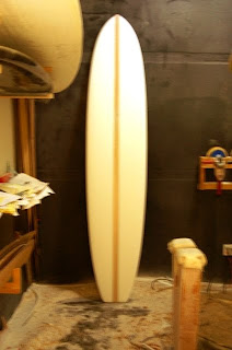 I know this picture is really bad, but the board is already in Japan. This is a tribute to one of my hero's, Matt Kivlin, who influenced modern surfboards as much as any one else. I got a chance to speak to him in Hawaii at Randy Rarick's auction. What a treat. Actually the whole weekend was amazing hanging out with Bing, "the coolest legend of all," and so many others...the list is far to long.